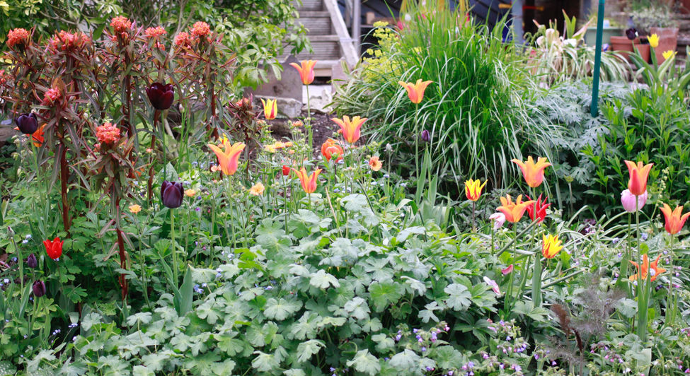 Jon and Jen's garden is a little different in that there is no stream. The garden is laid out with different areas with much of the planting as shrubs and perennials with some new ones in the main bed. There are two wildlife ponds, a willow trellis and The "Hobbit" hut which is always a favourite!